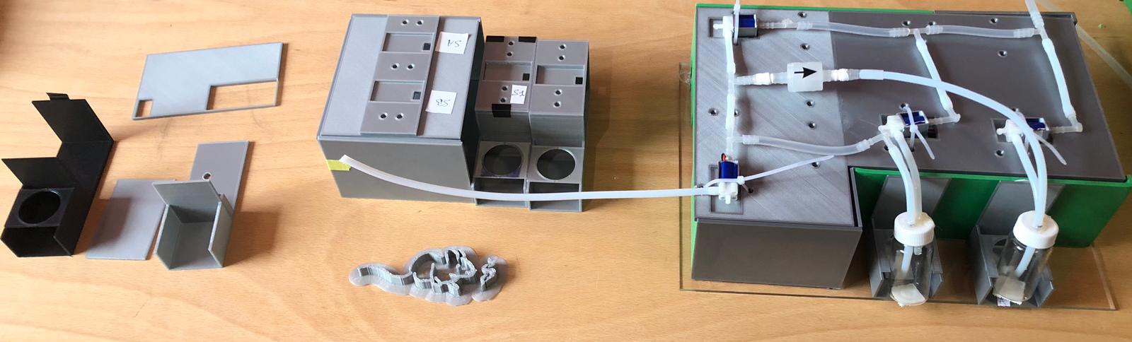 After the success of this first 3D printing, we started on our bigger piece, the box that would hold our olfactometer together.